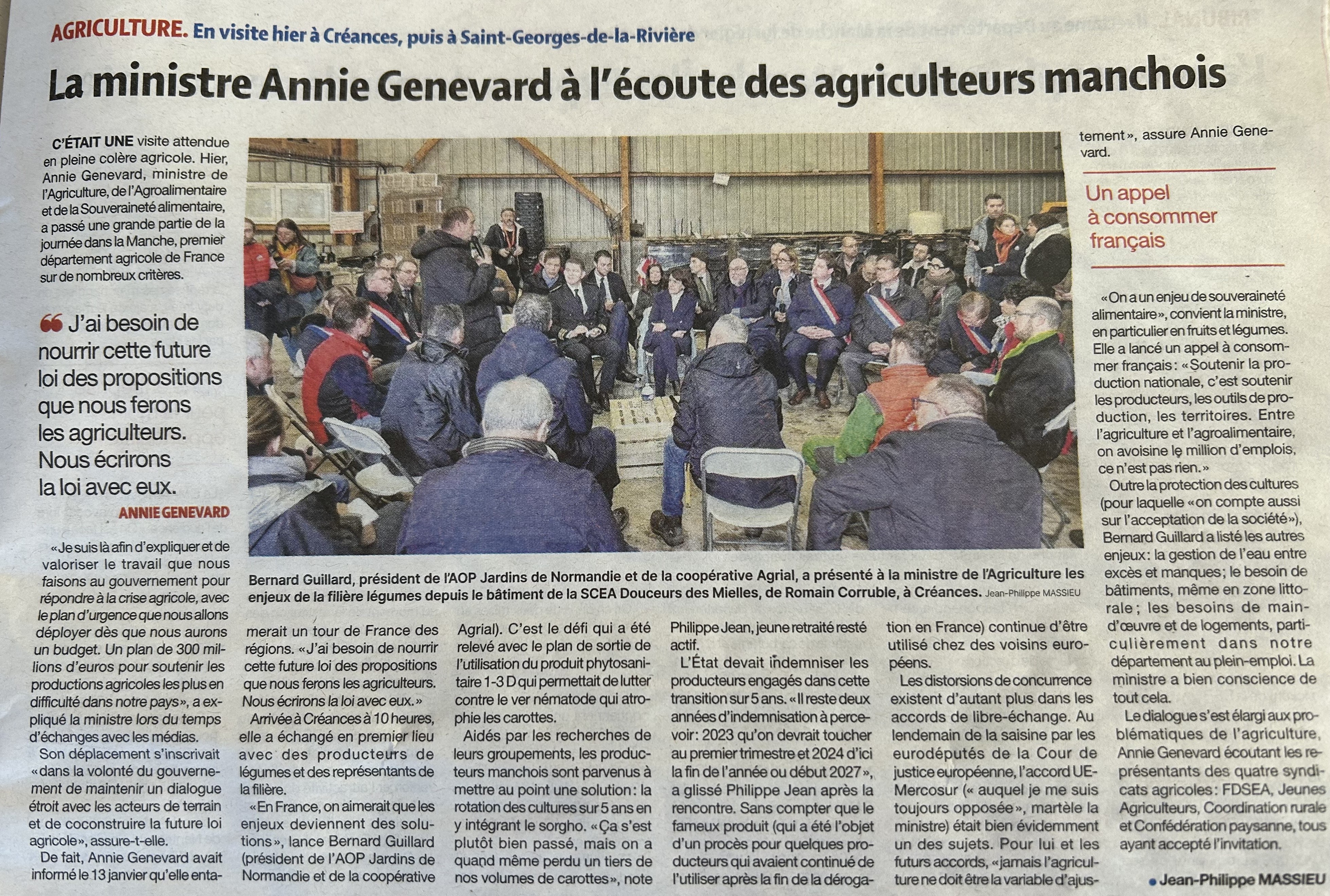 - Article de la Presse de la Manche sur la visite de la ministre de l'agriculture dans une ferme de la Manche Ici